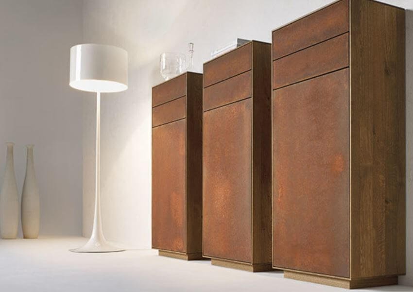 Corten-teräksen yleistyessä maailmassa ja löydettäessä entistä laajempia käyttömahdollisuuksia suunnittelijat halusivat tarjota ruostunutta terästä sisustukseen (seinät, ovet, katot, pylväät jne.), huonekaluihin tai pieniin sisustuselementteihin.