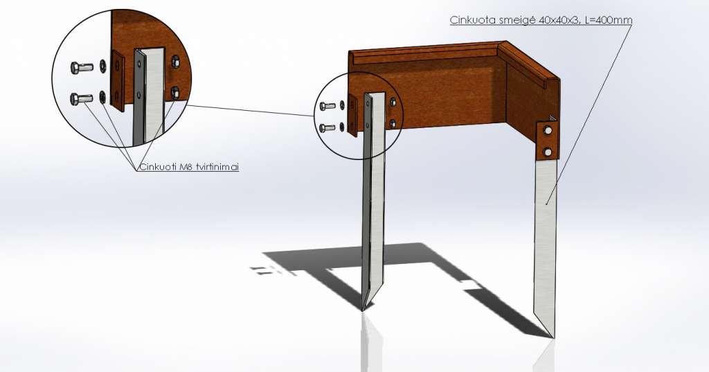 Corner edging is made from 2 mm Corten steel, both of its edges are 30 cm long. These parameters can be adjusted to your requirements.