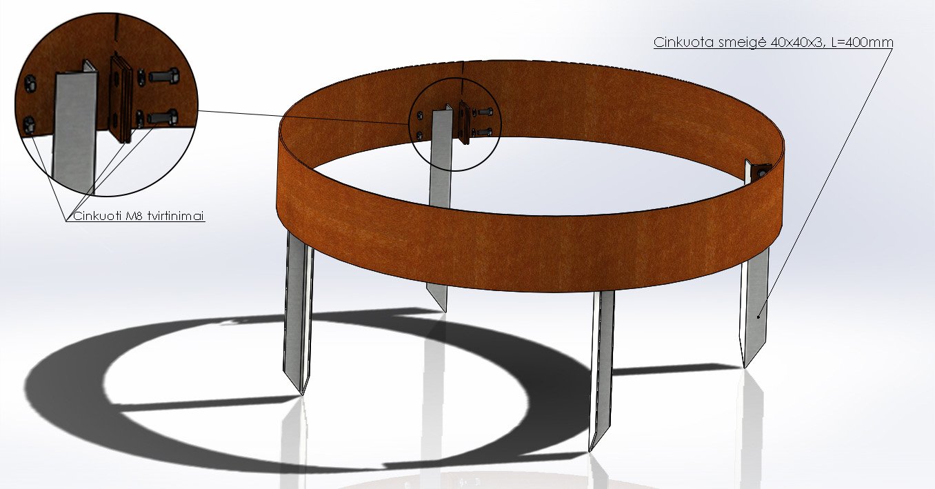 Round edging is rolled out of 2 mm Corten steel. The height and the diameter of the products are shown in the table below.